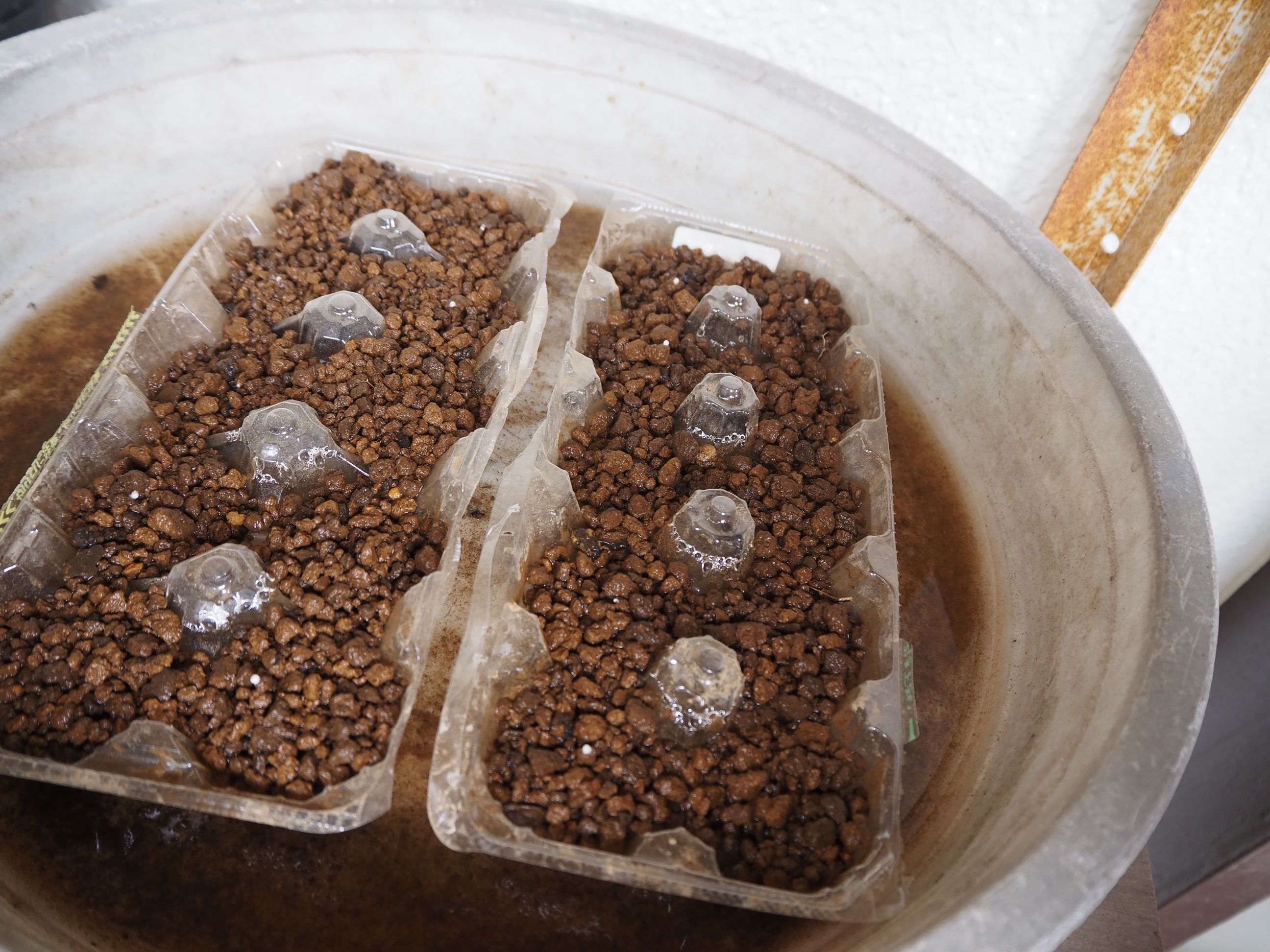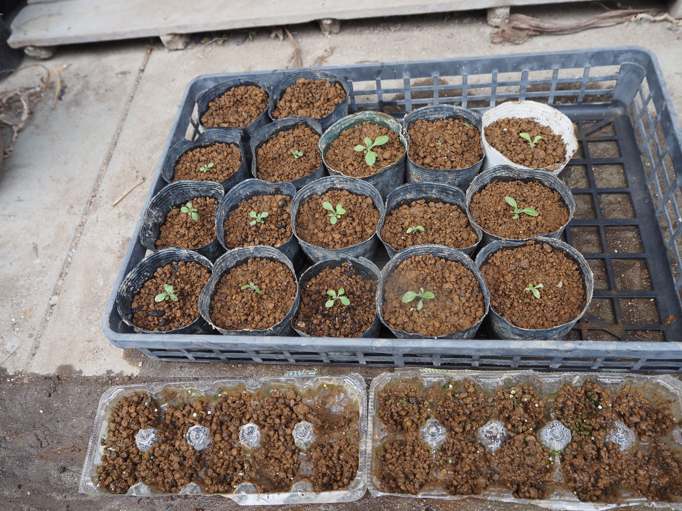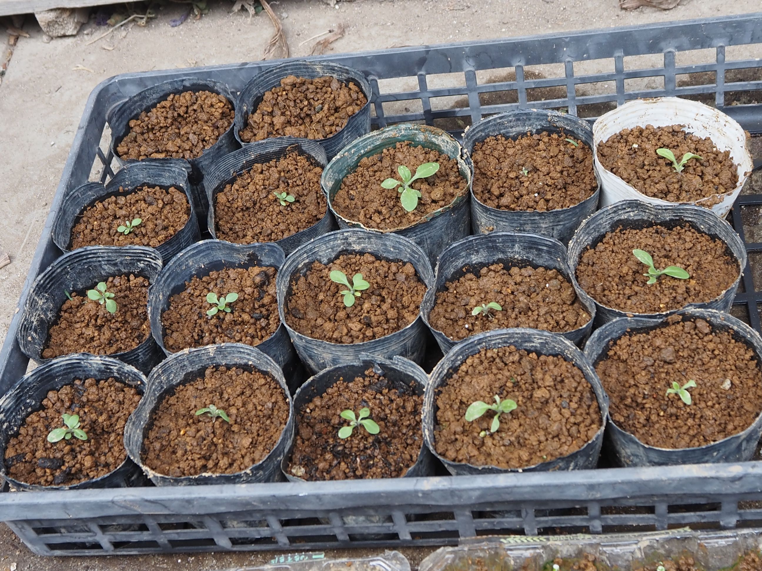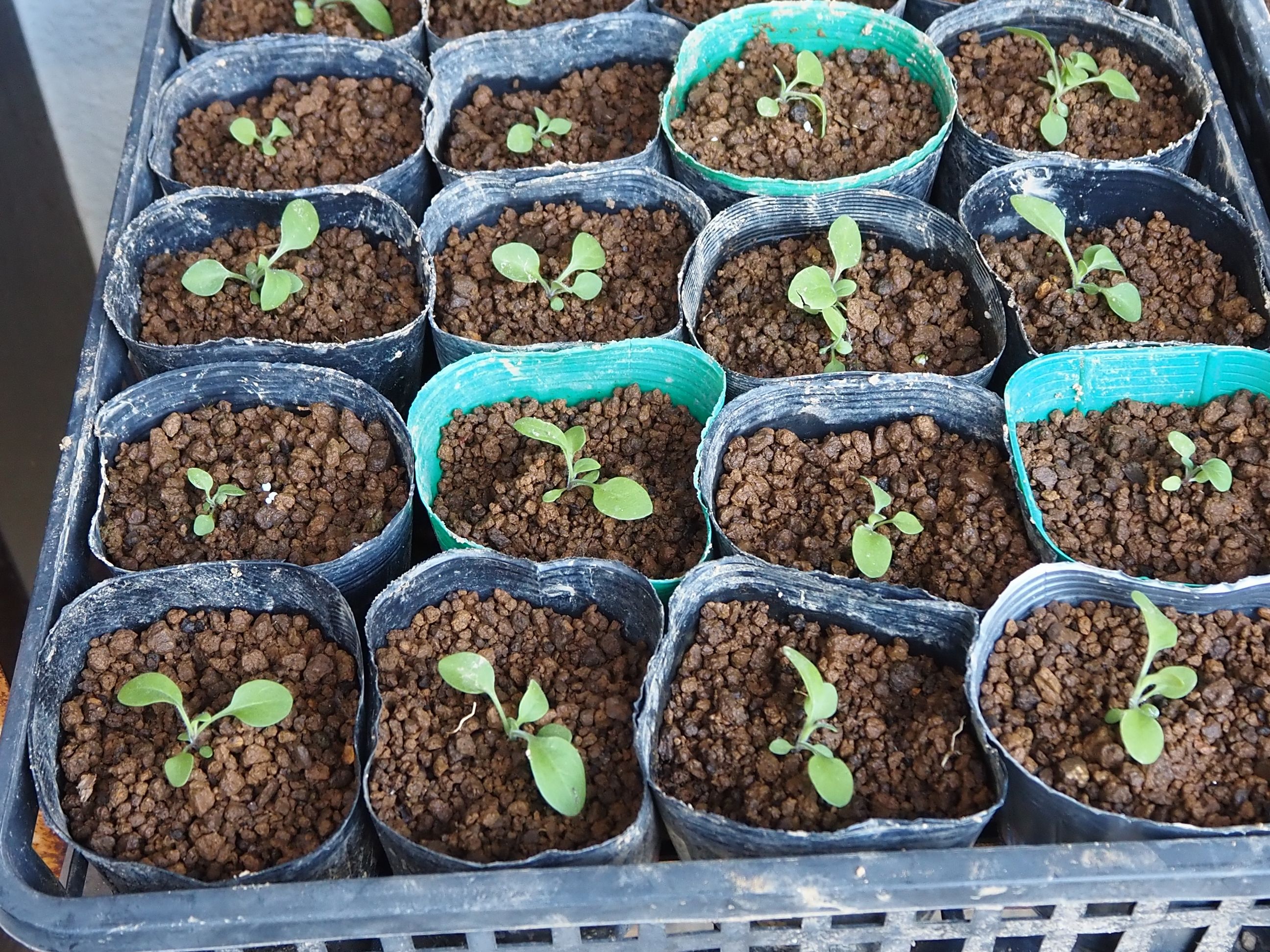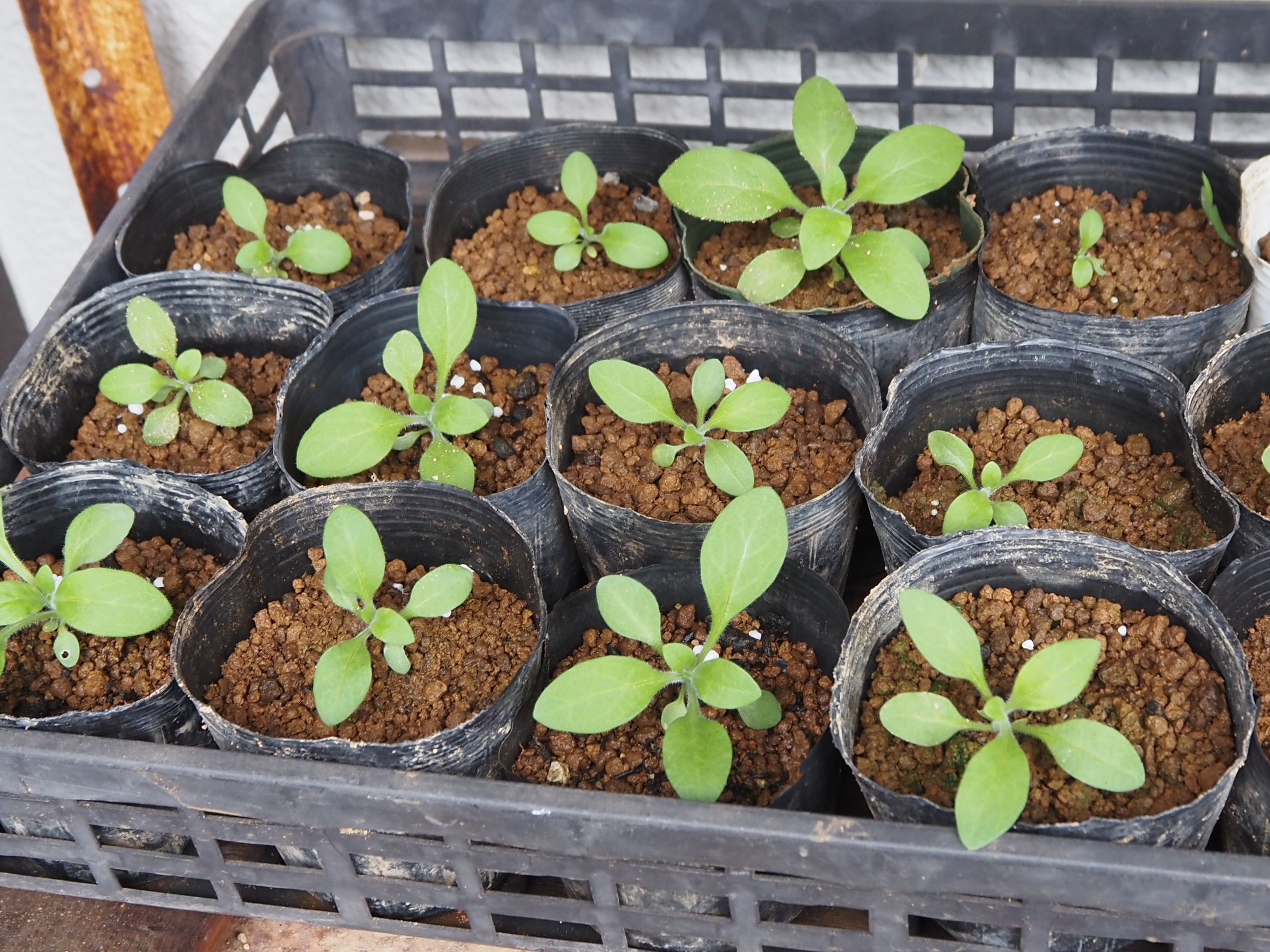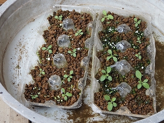 | 5月 | ●5月3日(土) 第16日:播種 40粒丁度: 玉子ケース:20粒: ビニールポット:20粒 どちらも小さな新芽が各12,3個見える ●5月5日(月) *ようやく春本番:今週後半は20℃: 第18日:播種 40粒丁度: 玉子ケース:20粒:新芽=17個 ビニールポット:20粒 :新芽=13個 発芽の数に差が出て来た。 ●5月10日(土) 第21日:播種 40粒丁度: 発芽の速度が少し遅い感じがする: 玉子ケース:20粒:新芽=17個−1=16個 ビニールポット:20粒 :新芽=13個−1=12個 ・卵ケースの方が発芽の数でもその後の生育でも良さそう: 三つ葉になっている数も多い: ●5月14日(水) 第24日:播種 40粒丁度: 玉子ケース:20粒:新芽16個+1 =17個 ビニールポット:20粒 :新芽=13個−1=12個 ・昨日、半数にマグアンプを散布した: 効果の良否は?? ●5月21日(水) 第31日:播種 40粒丁度: 玉子ケース:20粒:新芽16個+1 =17個 ビニールポット:20粒 :新芽:9個−1=8個 また1個消えた:理由は不明: 卵ケースでマグアンプを散布した苗が大きい: ●5月23日(金) 第33日:播種 40粒丁度: 玉子ケース:20粒:新芽17個−1=16個 ビニールポット:20粒 :新芽:8個−2=6個 ・また減った??なにか微生物? 卵ケースでマグアンプを散布した苗が大きい: *苗の数が少ないので、ペチュニア:追加発注:1袋: ●5月29日(木) @追加:ペチュニア:39粒:播種:第1日: すべて卵ケース: @第1陣:第39日:播種 40粒丁度: 玉子ケース:20粒: ビニールポット:20粒 :新芽:2個 *卵ケースからポットに植え替え:14・5個しか無かった: 消滅の原因不明: *植え替え:2日目: |