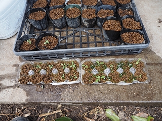 | 4月 | ●4月18日(金) *ようやく春本番:今週後半は20℃: 播種:第1日: 40粒丁度: 玉子ケース:20粒: ビニールポット:20粒 底面給水にした: ●4月27日(日) 第10日:播種 40粒丁度: 殻が割れて来た ●4月29日(火) 第12日:播種 40粒丁度: 温室から外に出した: どちらも小さな新芽が4個見える |