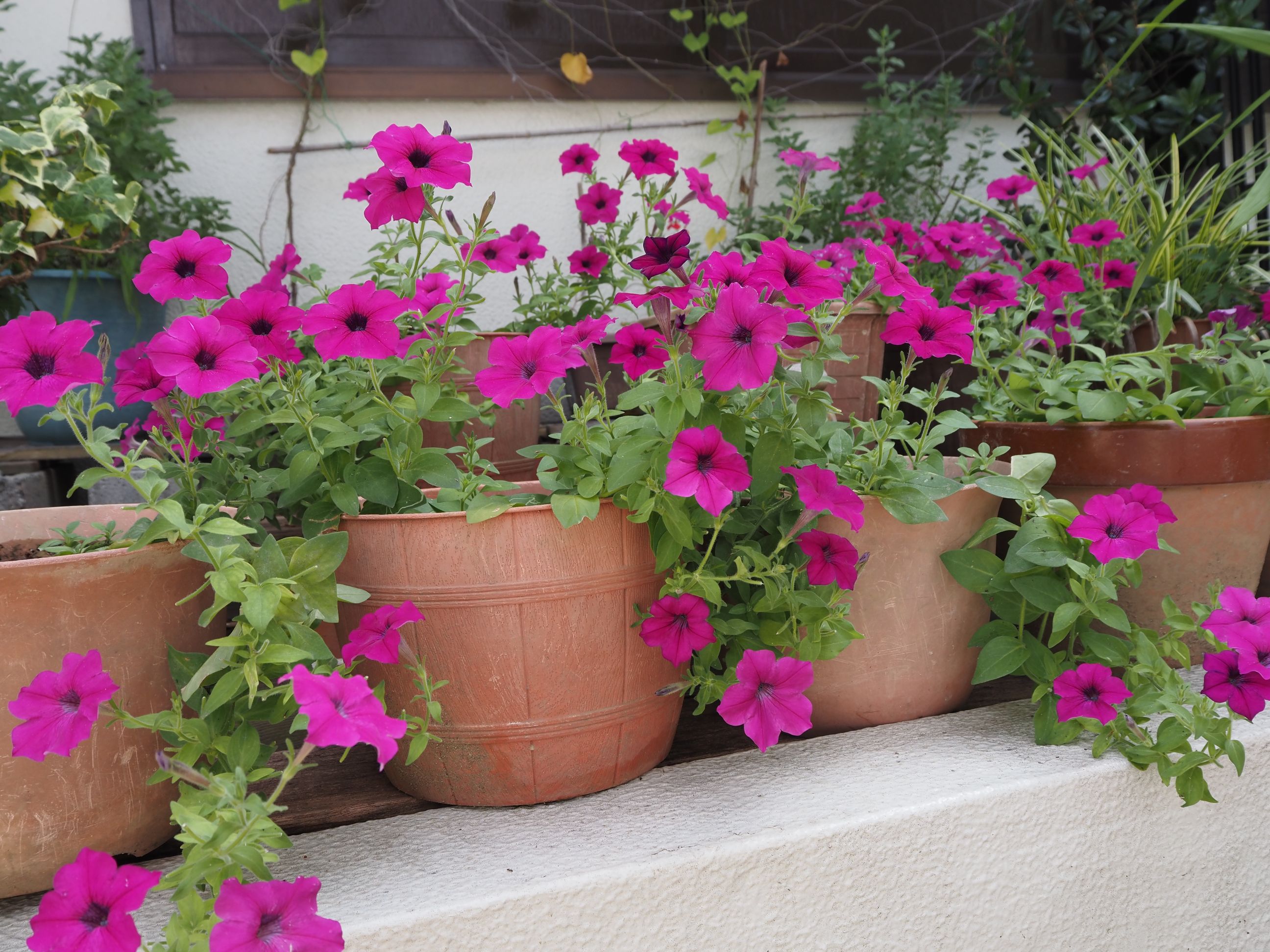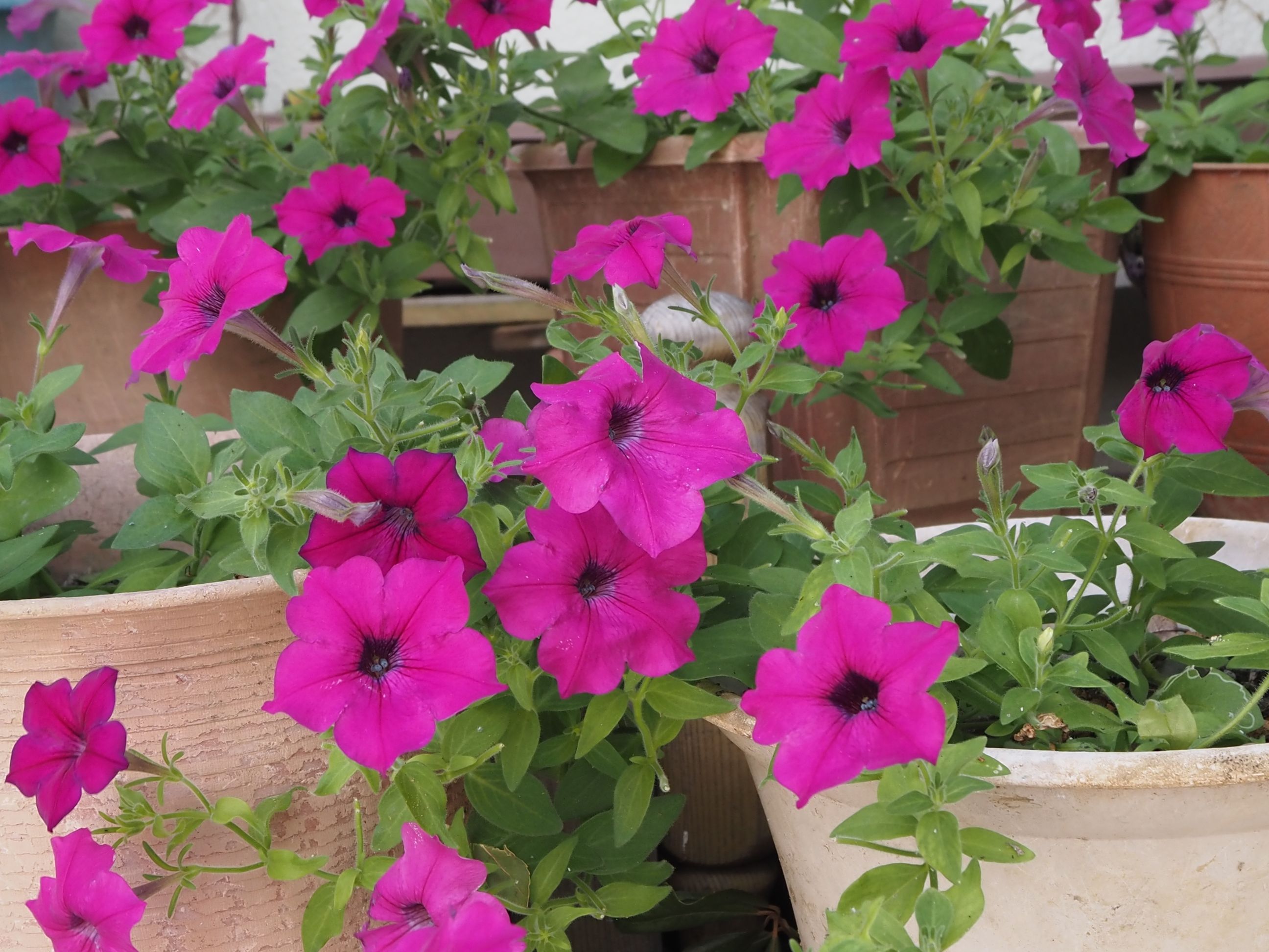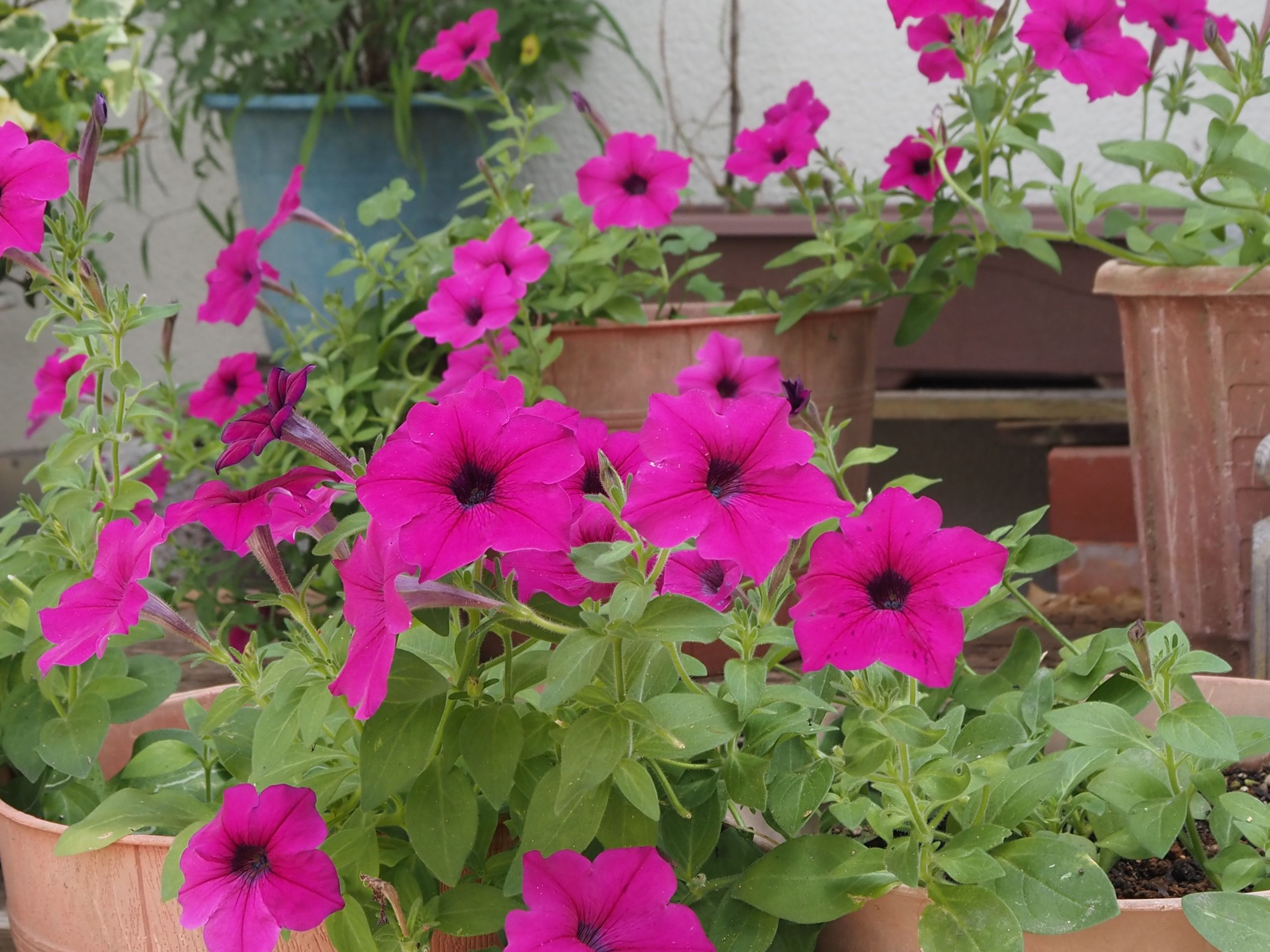 | ★越冬:ペチュニア:まとめ: 今までのペチュニアは越冬しても極く僅かで 有ったが今回(昨年のもの)は殆どの鉢が枯れなかった。 原因は不明。 肥料?葉虫?土?木酢? 1月:花数は10〜3,40咲いていた。 4月には5,60個 5月には100個前後。 6月中旬・・・越冬したペチュニア・・・ほぼ終了: すべての鉢を撤収した: |